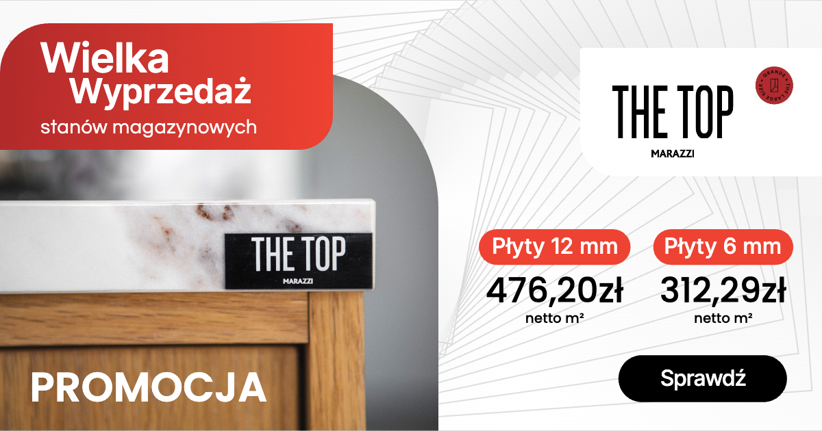 Zapraszamy do skorzystania z wyjątkowej okazji na zakup spieków kwarcowych z prestiżowej linii Marazzi The Top. Przygotowaliśmy dla Państwa wyprzedaż stanów magazynowych, która obejmuje materiały w pierwszym gatunku.